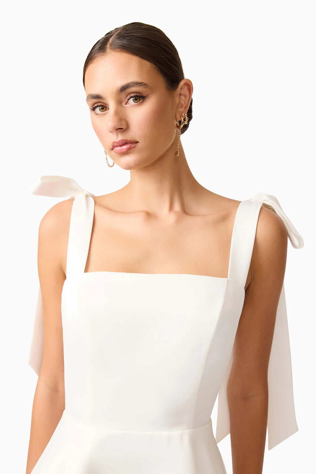 - Duchess satin fabrication delivering a luxurious sheen and structure